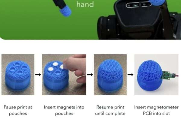 Experimentación y desarrollo de sensores táctiles personalizados mediante impresión 3D, donde se busca ajustar la geometría o la sensibilidad del sensor. La investigación eFlesh lo describe como “cuatro componentes bastan: impresora 3D, imanes, modelo CAD, y esta placa magnetométrica”.