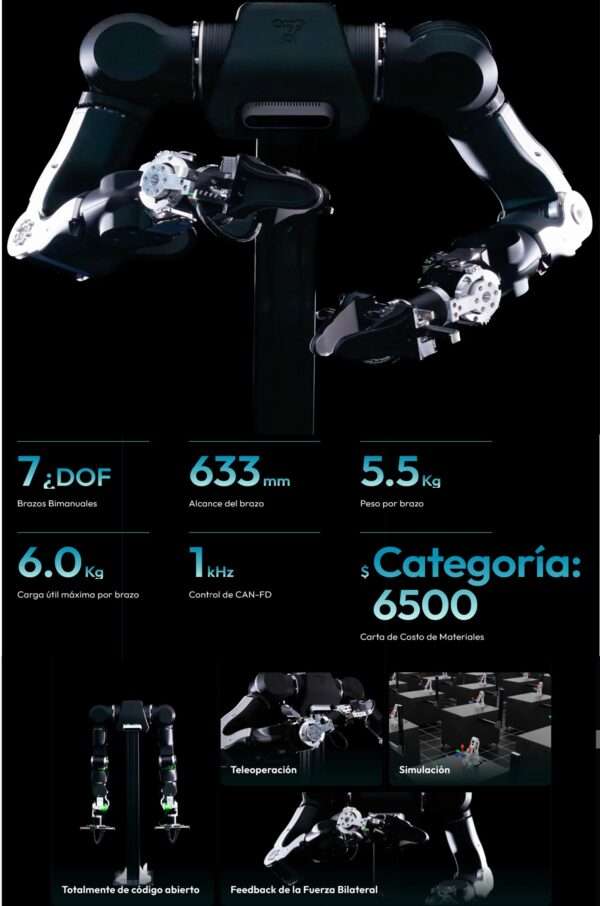 🔹 Retroalimentación de fuerza bilateral para interacción física más natural. OpenArm